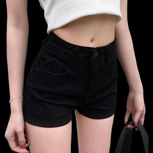 여자 슬림핏 검정 흰색 진 숏팬츠