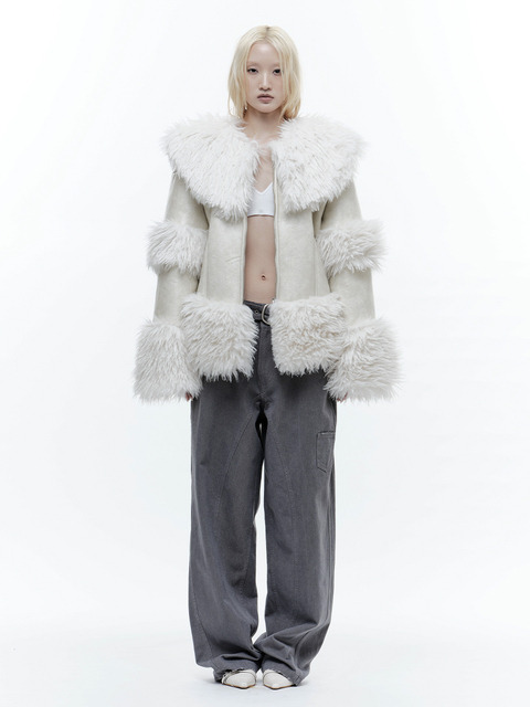 [웻태그] WIDE COLLAR LEATHER SHEARLING JACKET WHITE