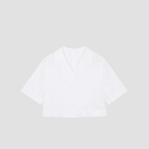 [유닛]백 카라 슬릿 하프 슬리브 크롭 셔츠 (원피스 세트) [UFJWSH27AN-WHITE]
