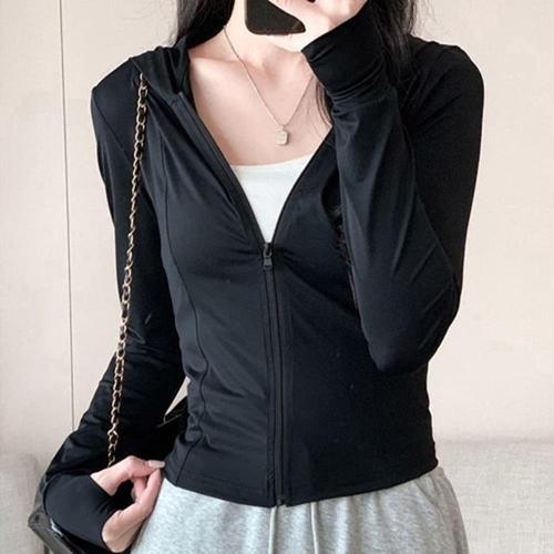 여성 무지 기본 숏기장 세미크롭 후드집업 아우터 5색