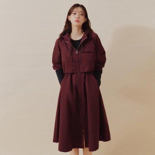 제로투올샵2 / 가을 여성 후드 트렌치 코트 레드 S