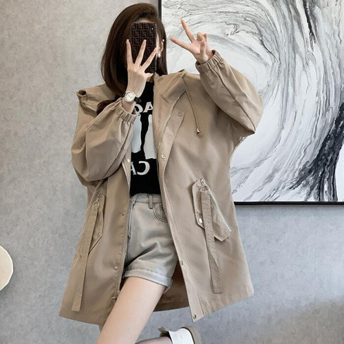 HXAO 여성용 윈드브레이커 아우터 후드 크롭 재킷 여성용 솔리드 트렌치코트 가을 긴팔 데미시즌 캐주얼 코트
