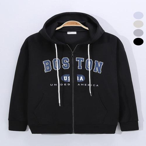 [후앙스]남녀공용 보스턴 프린팅 루즈핏 데일리 후드 집업 EYHD2118