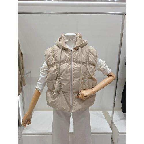 [시슬리]배색 후드 패딩 베스트 (SAPD31361 다크베이지,아이보리)_DJ