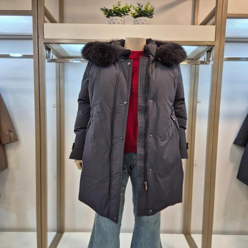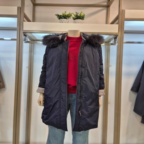 [중고명품] 55 FW 네이비 구스다운 스틸링 블랙 퍼 후드 파카 코트