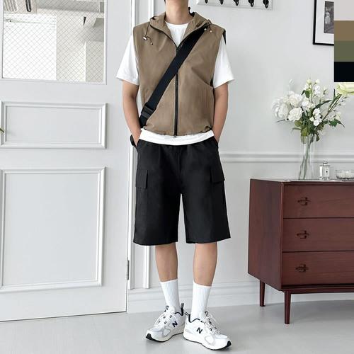 남성 주머니 후디 캐쥬얼 윈드브레이커 조끼