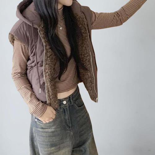 |CDJ67F9|여성용 후드 집업 뽀글이 니트 베스트 캐주얼 후리스