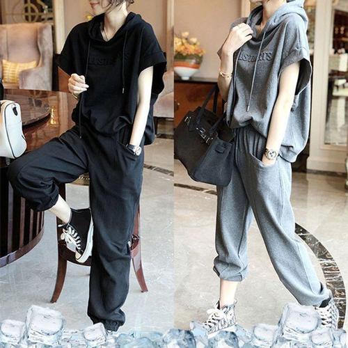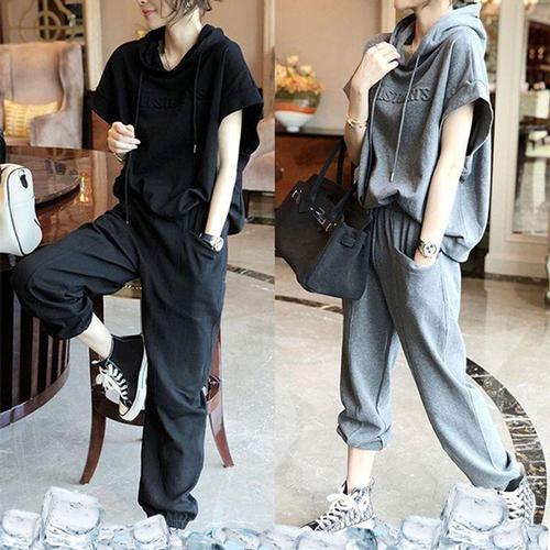 H스타일(LH)BB후드조끼세트 봄 여성 반팔 트레이닝복세트 츄리닝셋트 상하셋업 바지세트