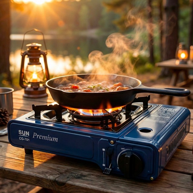 크루거 국산 캠핑 휴대용 미니 가스버너 이중안전차단 내연식화구 부탄버너 가스레인지 야외 캠핑용 렌지