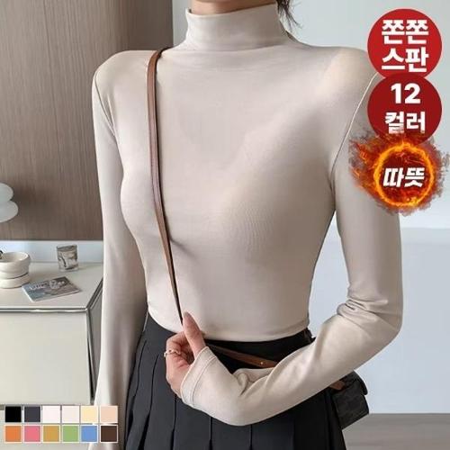 [텐제로] 여성 겨울 추위제로 주니어 시니어까지 두툼기모 목폴라티셔츠 모크넥 TZ41124G