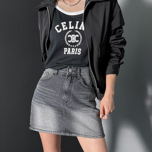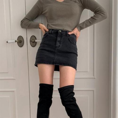 [다잇템]여자 흑청치마 슬림 대학생 논스판 미니스커트