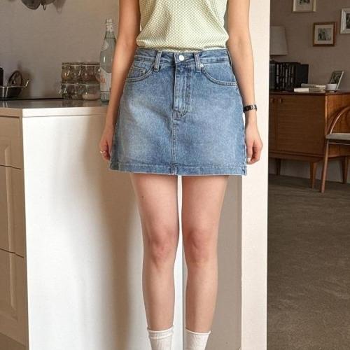 [다잇템]여자 슬림미니스커트 흑청 논스판 3부 청치마
