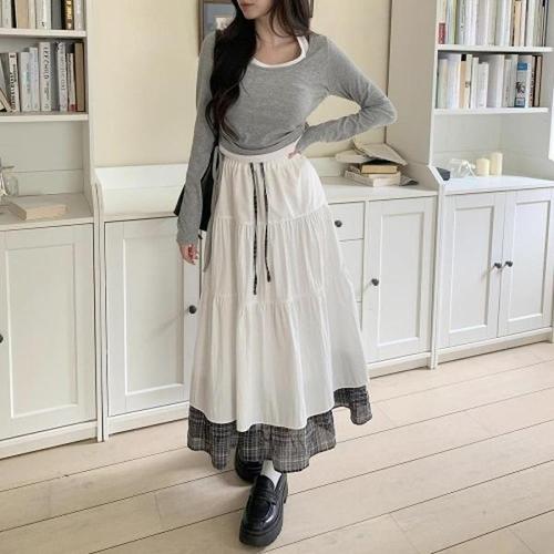 [다잇템]여자 티어드 흰색 고무줄 클래식 롱스커트