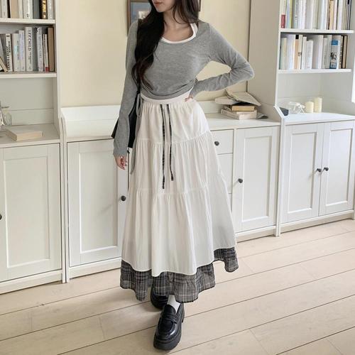 [다잇템][다잇템] 여자 고무줄 클래식 티어드 흰색 롱스커트_24717791_588872