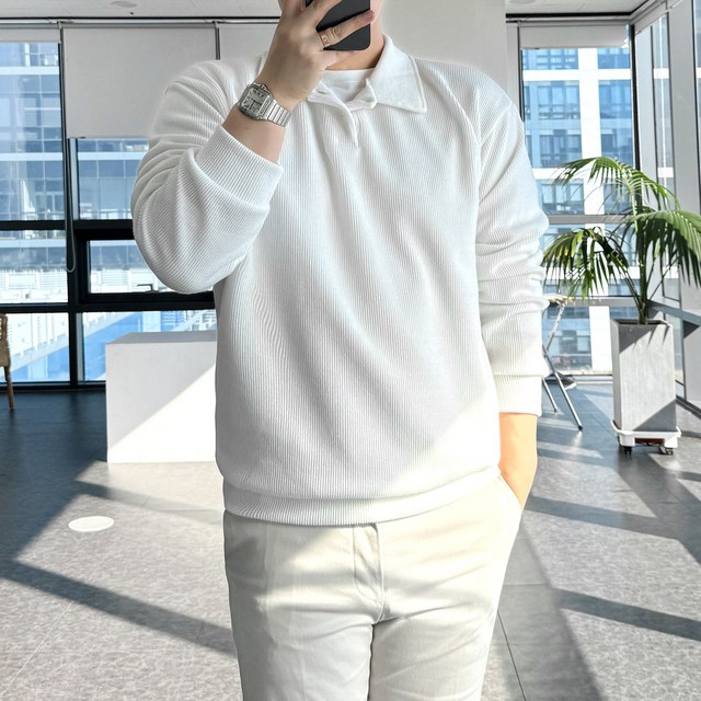 룩플레인 국내생산 세련된 맨투맨 니트 카라 티셔츠 10color
