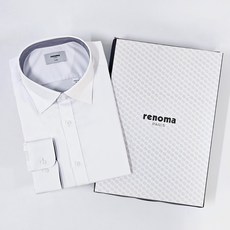 [백화점 정품] 레노마 남성 드레스셔츠 화이트 일반핏 스판소재 정장 와이셔츠 긴팔 (선물포장)