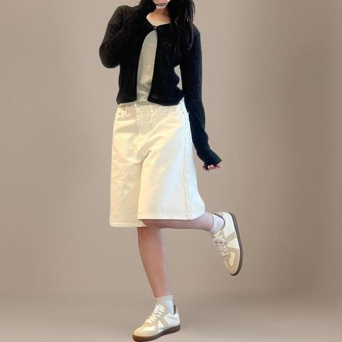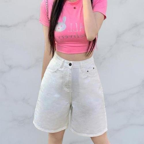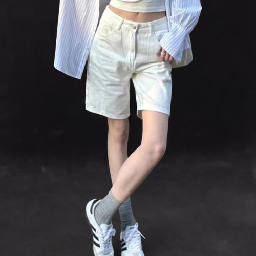 [다잇템]여성 화이트 와이드핏 하프 면반바지 반바지