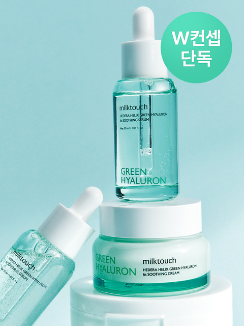 [밀크터치] [수분보습SET] 그린 히알루론 세럼 2개+그린 히알루론 크림1개 (+패드 10매 추가 증정)