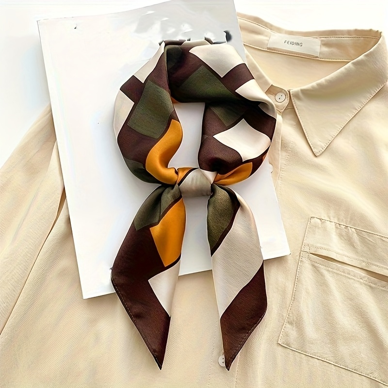 TEMU 1개 27.6인치 럭셔리 멀티펑션 엘레강트 스퀘어 스카프, 빈티지 프린트 페이크 슬립 패브릭 라이트 베이지-친절한 터치, 프로페셔널 소형 사이즈 스카프