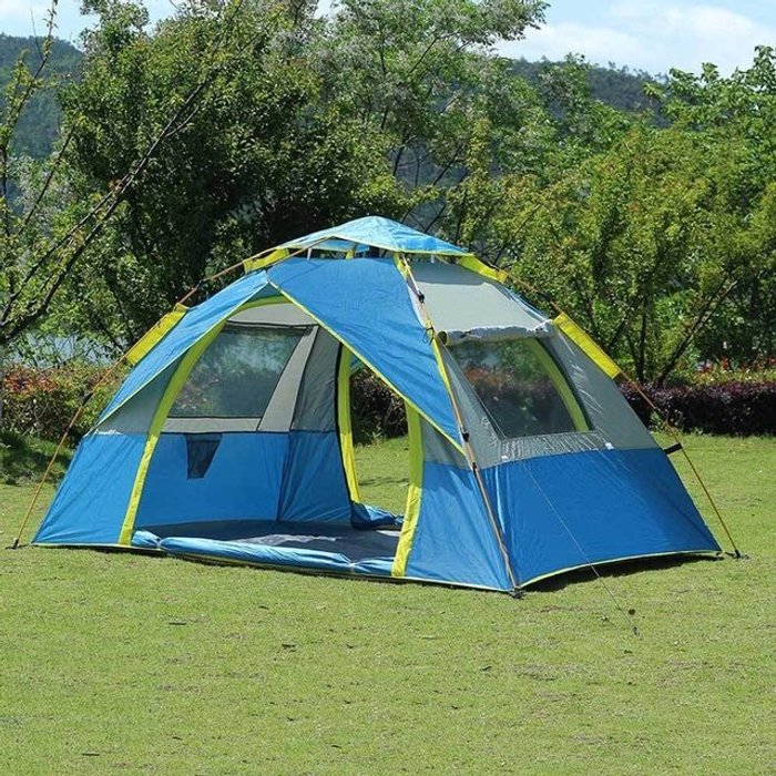 TEMU 4인 가족용 야외 캠핑 텐트 - 튼튼한 옥스포드 원단으로 제작된 자동 팝업 캠핑 텐트, 통풍 메시 포함, 휴대용, 해변, 낚시, 하이킹에 적합, 캠핑 및 하이킹 장비, 자연 환경에서 사용하기 위해 설계됨