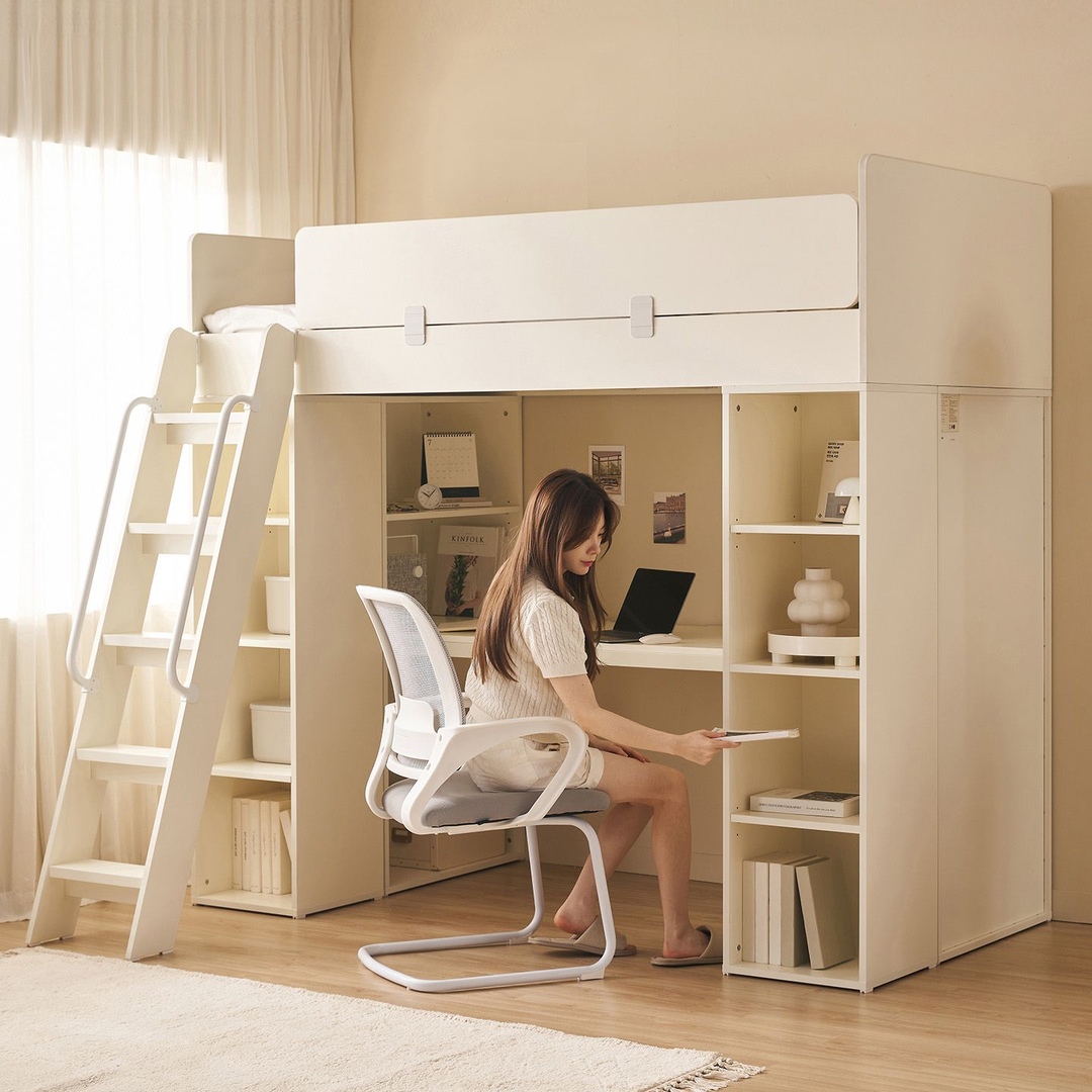 일루일루 코모드i 올인원 책상형 벙커침대 프레임 철제 수납 선반 성인 학생 2층