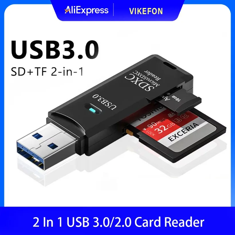 다기능 2 In 1 고속 USB 3.0/2.0 카드 리더기 TF + SD 컴퓨터 태블릿 카메라 노트북 자동차 장착 지원