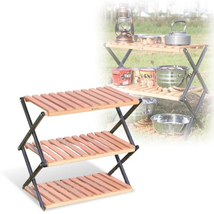 [JHP0RRRS_51D4]우드 3단 경량선반 접이식 캠핑 쉘프