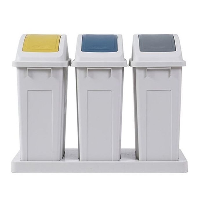 3분류회색뚜껑분리수거함/50L/분리수거대/대용량/재활용품수거함/재활용수거대/재활용품/3칸쓰레기통/대형