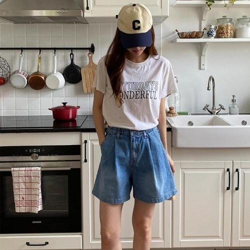 [다잇템][다잇템] 여자 SS 후레아 4부 진청 하프팬츠 핀턱 데님팬츠_17862659_588872