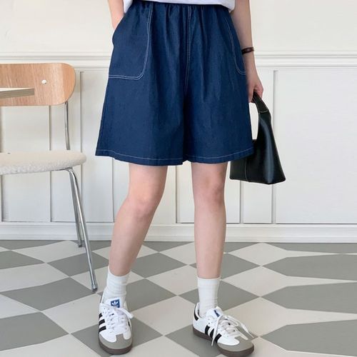 [셀럽하우스]티네즈 ZSIQ1156 A라인 데일리 4부 스티치 데님 숏팬츠