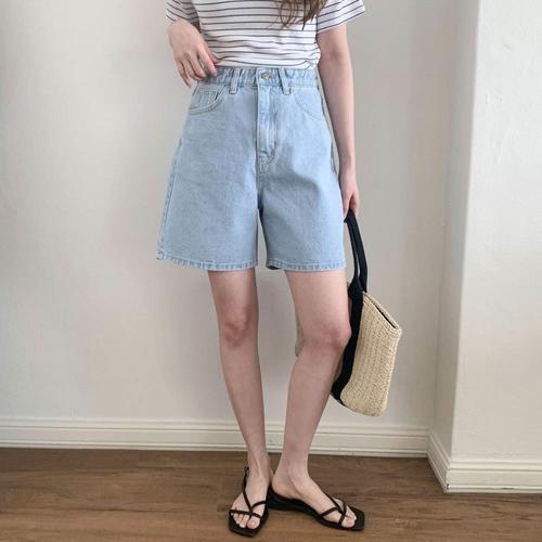 [옷자락] 여성 여름 데님 와이드 4부 버뮤다 반바지 논스판