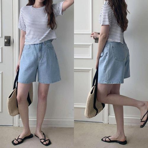 토마토팩토리 여성용 에디슨 여름 4부 데님 숏 청 반바지