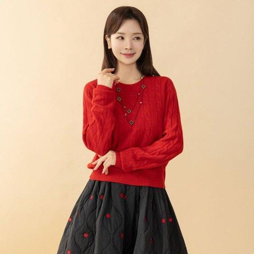 [디얼마미][디얼마미] 심플 꽈배기 울 니트티 /마담 미시 중년 여성 빅사이즈 40대 50대