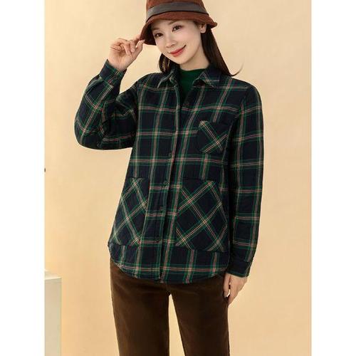 [디얼마미]포켓 체크 본딩 셔츠 자켓 /마담 미시 중년 여성 빅사이즈 40대 50대