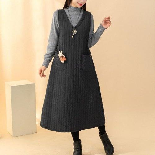 [디얼마미][디얼마미] 브로즈 누빔 조끼 원피스 /마담 미시 중년 여성 빅사이즈 40대 50대