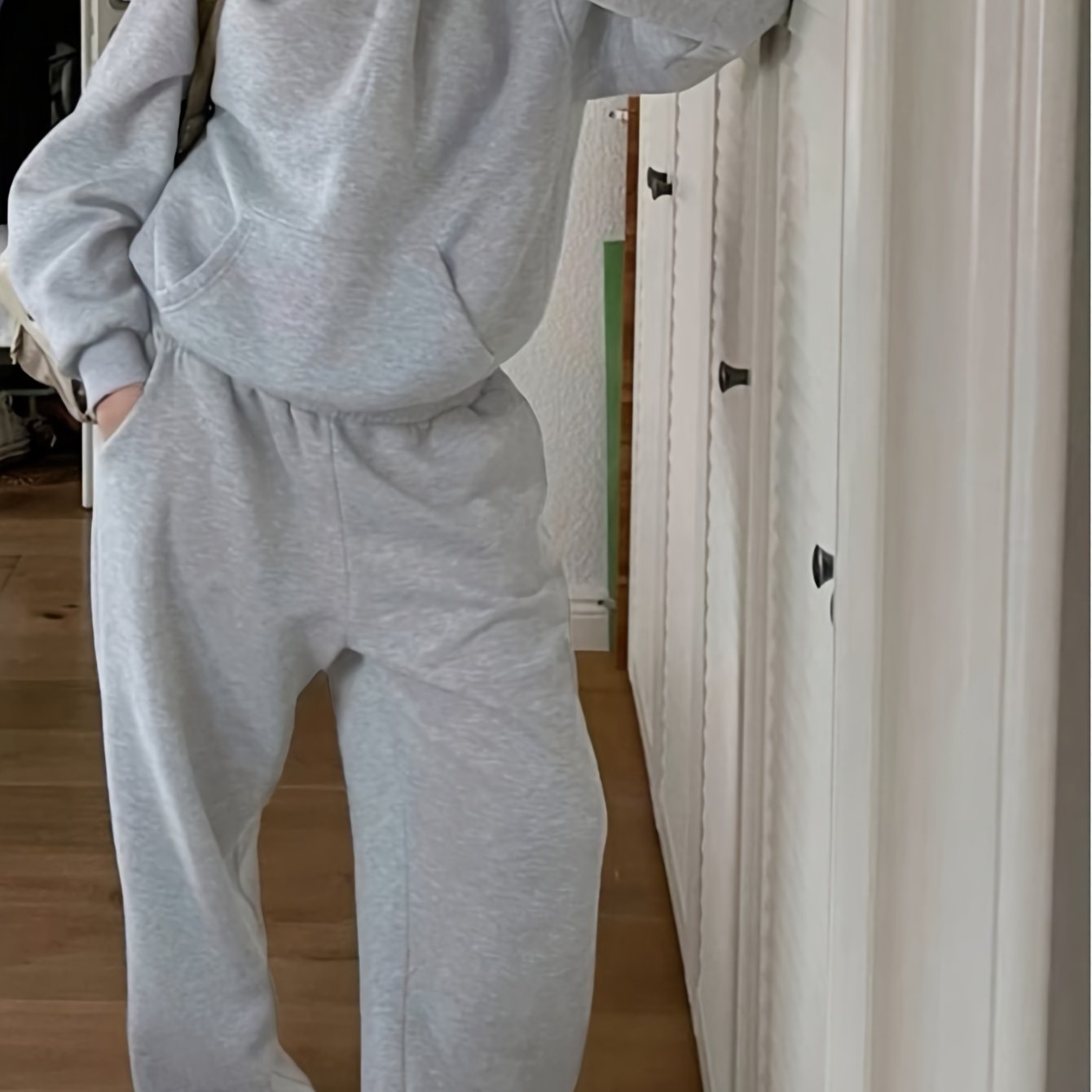 TEMU 여성 솔리드 컬러 후드 탑 & 레그 캐주얼 팬츠 세트 (가을/겨울 외출복)