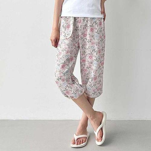 [셀러허브_여성트랜드패션]ONM 플라워 패턴 7부 밴딩 팬츠 홈웨어 잠옷 바지