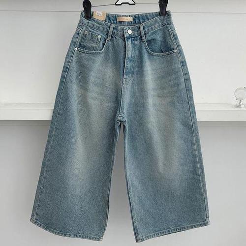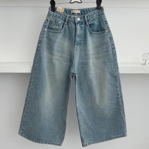 [다잇템]여성 칠부 FW 하프팬츠 워싱 진 넓은 청반바이