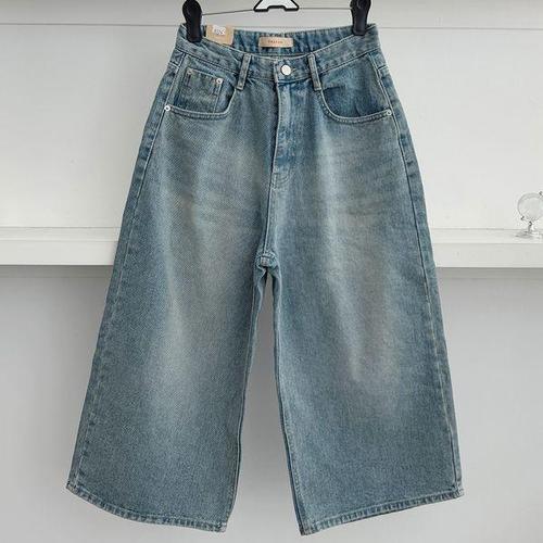 [다잇템]여성 워싱 진 FW 넓은 하프팬츠 칠부 청반바이