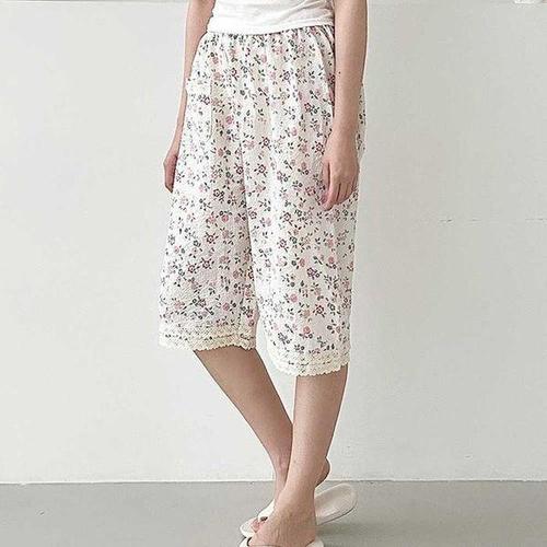 [셀러허브_여성트랜드패션]ONM 플라워 레이스 7부 밴딩 팬츠 홈웨어 잠옷 러블