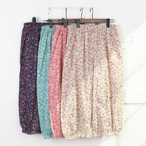 [옷자락] 여성 플라워 패턴 항아리핏 밴딩 7부 잠옷 바지
