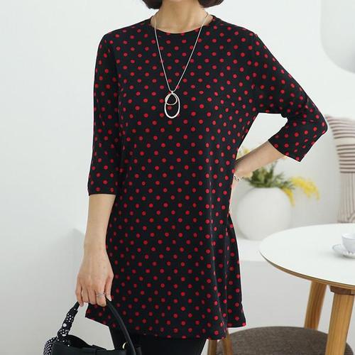 여자 빅사이즈 7부 라운드넥 롱 티셔츠