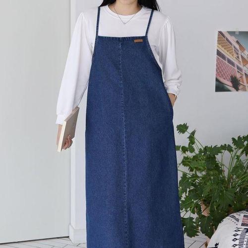 [신상오픈런]여자 데님원피스 끈 절개 박시핏 77사이즈 롱원피스