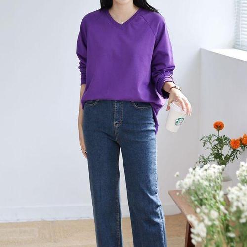 [옷자락]여자 나그랑 브이넥 쭉티 힙커버 77사이즈 가을 맨투맨