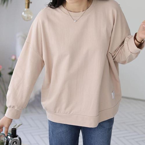 [옷자락]여자 라벨 오버핏맨투맨 77사이즈 쭈리 라운드 티셔츠