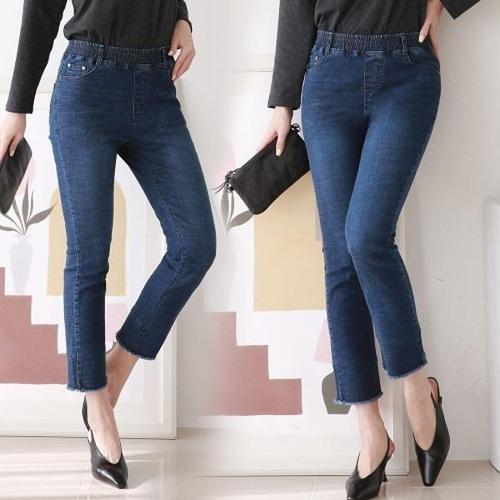 [엄지척]허리밴딩 팬츠 여자8부청바지 여자청바지 밑단컷팅 8_20136351_667501