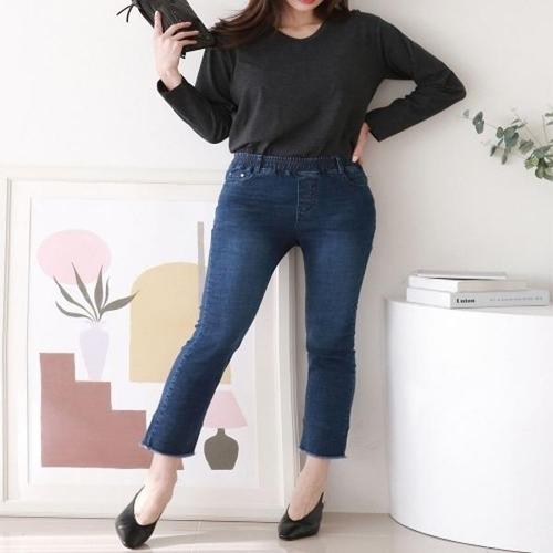 [셀러허브_여성트랜드패션]빅사이즈 506 8부워싱뒷밴딩청바지 DLOP213