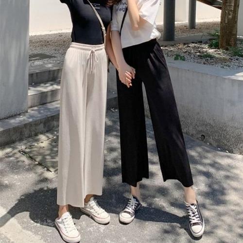 크롭팬츠 와이드 쿨링팬츠 통바지 조거 9부팬츠 허리밴딩