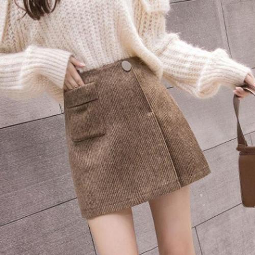 [플라스틱아일랜드]코듀로이 앞오픈 A라인스커트 PR4WS661