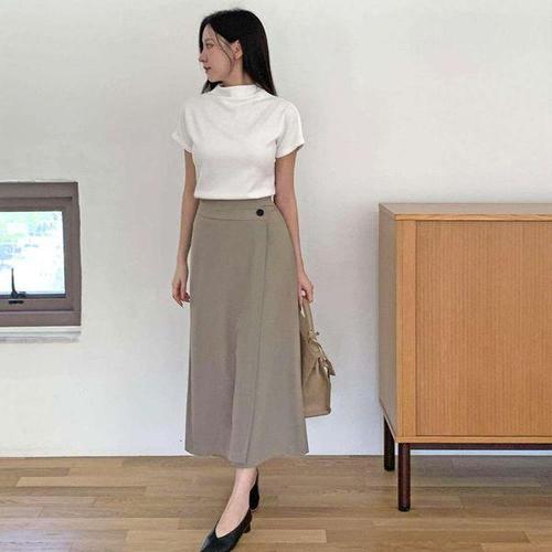 [신상오픈런]여성 클래식 심플 A라인 랩 하이웨스트 롱 스커트
